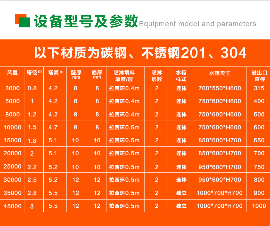 簡介:  噴淋塔(俗稱:水淋塔)是一種處理煙塵廢氣的濕式環(huán)保設備,可適用于發(fā)電廠燃燒煙塵、鋼鐵廠、鍋爐燃燒、垃圾燃燒等煙塵廢氣處理,這類的煙氣粉塵容易溶于水,噴淋塔是處理這類煙氣粉塵的不二之選。煙氣粉塵從塔底進入塔內,塔內有填料支撐板,噴淋塔從塔頂噴出液體,液體均勻的分布在塔內和污染物充分接觸,達到凈化的效果,最后塔頂排出。
