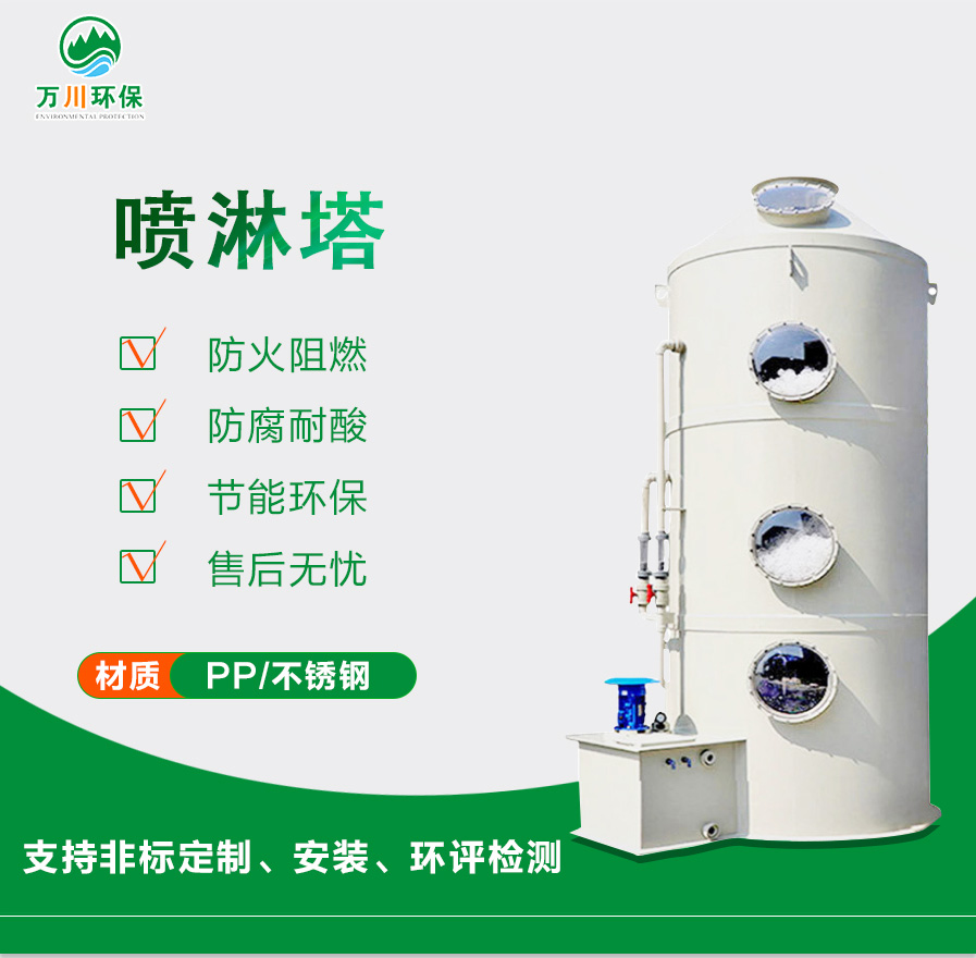 噴淋塔(俗稱:水淋塔)是一種處理煙塵廢氣的濕式環(huán)保設備,可適用于發(fā)電廠燃燒煙塵、鋼鐵廠、鍋爐燃燒、垃圾燃燒等煙塵廢氣處理,這類的煙氣粉塵容易溶于水,噴淋塔是處理這類煙氣粉塵的不二之選。煙氣粉塵從塔底進入塔內,塔內有填料支撐板,噴淋塔從塔頂噴出液體,液體均勻的分布在塔內和污染物充分接觸,達到凈化的效果,最后塔頂排出。