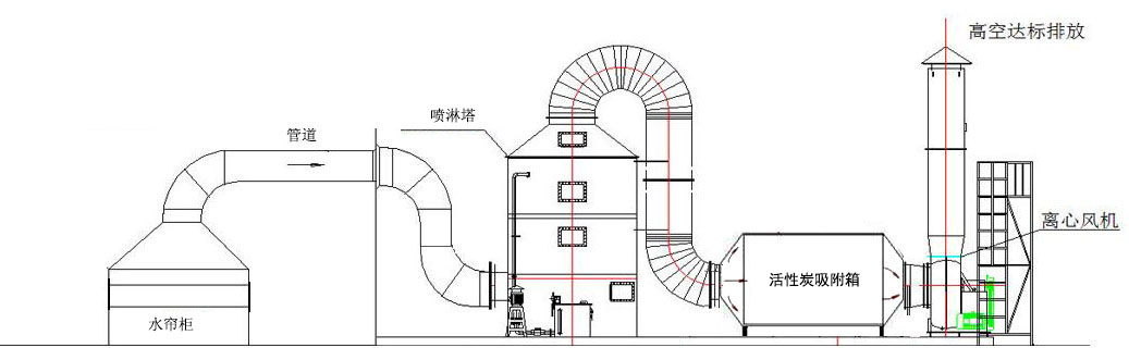 中等排放量,常見(jiàn)的過(guò)程有:收集-噴霧塔-活性炭吸附箱(或UV光解)-風(fēng)扇-排放過(guò)程。