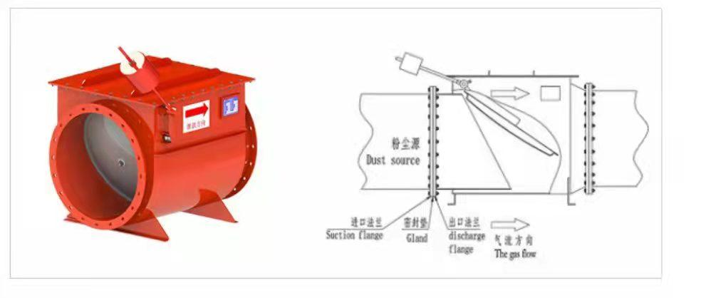 粉塵隔爆閥:與泄爆裝置配合使用,當(dāng)除塵系統(tǒng)發(fā)生粉塵爆炸時,有效阻斷爆炸沖擊波返回車間,保證車間人員安全。