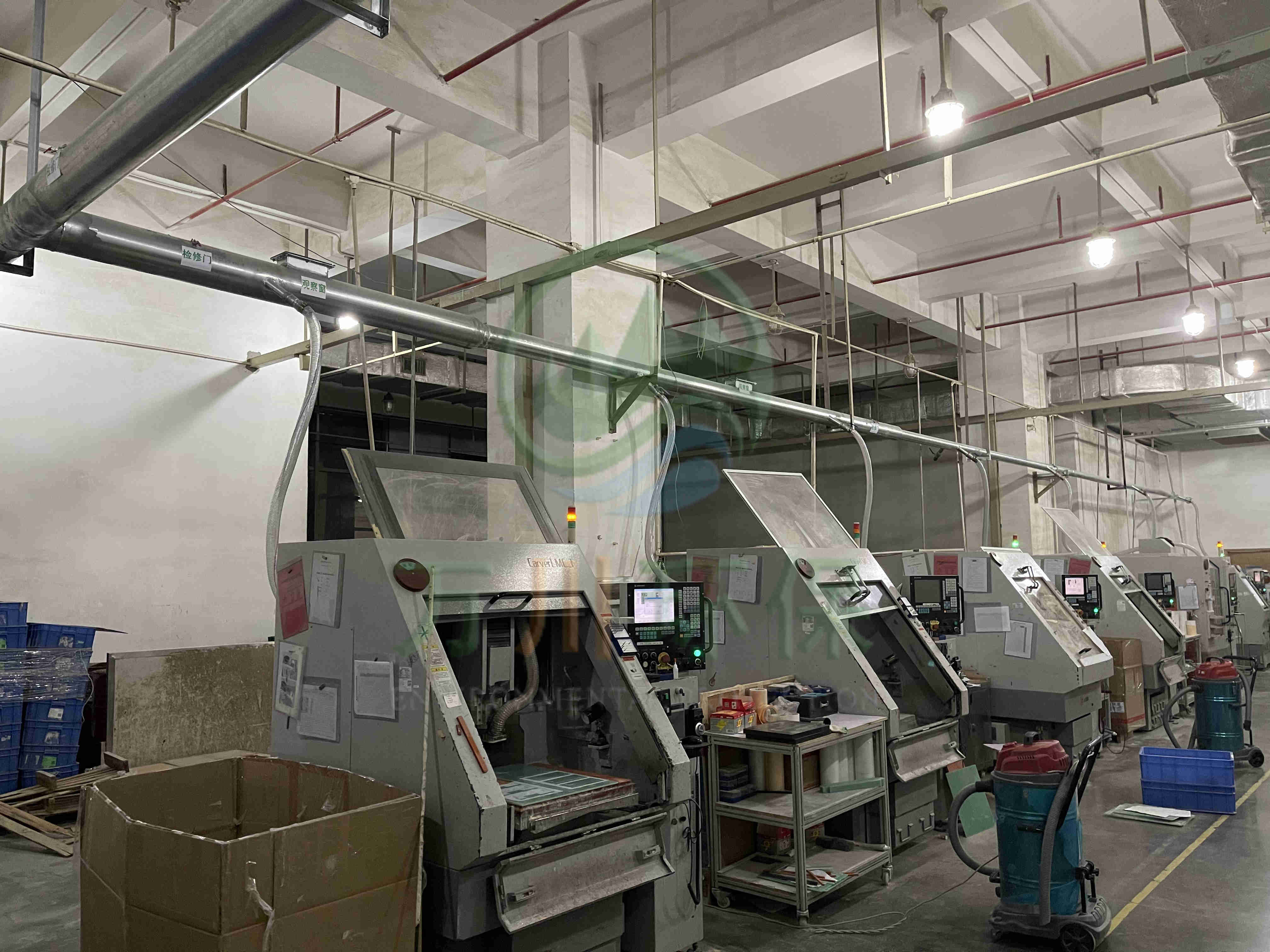 對車間11臺精雕機進行中央集塵,改善車間環(huán)境,符合當(dāng)?shù)嘏欧艠?biāo)準和防爆要求