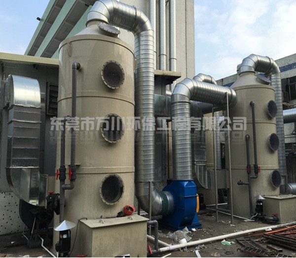 噴淋塔也叫水淋塔,是以水為介質(zhì)處理粉塵。含塵氣體從塔體下方進(jìn)氣口沿切向進(jìn)入噴淋塔,在風(fēng)機(jī)的作用下,迅速充滿進(jìn)氣段空間,然后塔頂位置的噴淋頭向下噴水,水與含塵廢氣接觸,使得空氣和粉塵分離,達(dá)到除塵的效果。噴淋塔具有結(jié)構(gòu)簡(jiǎn)單、造價(jià)低、占地面積小、凈化效率高等優(yōu)點(diǎn),能夠處理高溫、高濕的氣流,將著火、爆炸的可能減至最低。經(jīng)治理后,污染物排放達(dá)到標(biāo)準(zhǔn):執(zhí)行《廣東省大氣污染物排放標(biāo)準(zhǔn)》(DB44/27-2001)中第二時(shí)段一級(jí)標(biāo)準(zhǔn)。
