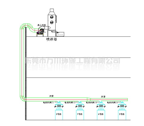 根據廠方提供的資料及現(xiàn)場勘察的情況,我司可以確定該廠的廢氣為“氨氣”。根據該廢氣的性質,萬川環(huán)保決定為該廠選定設備為--噴淋塔。(工藝簡圖如下)