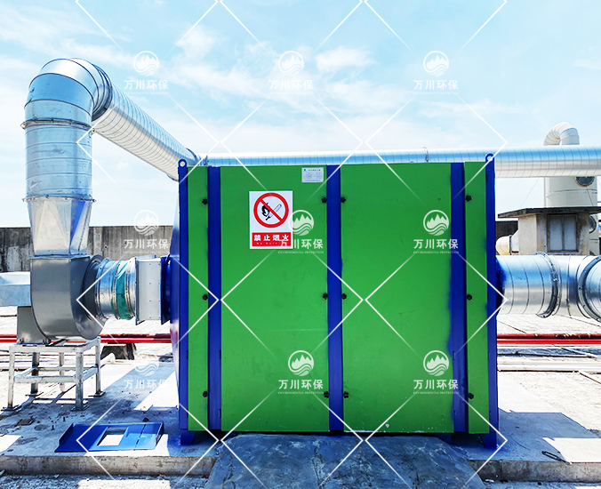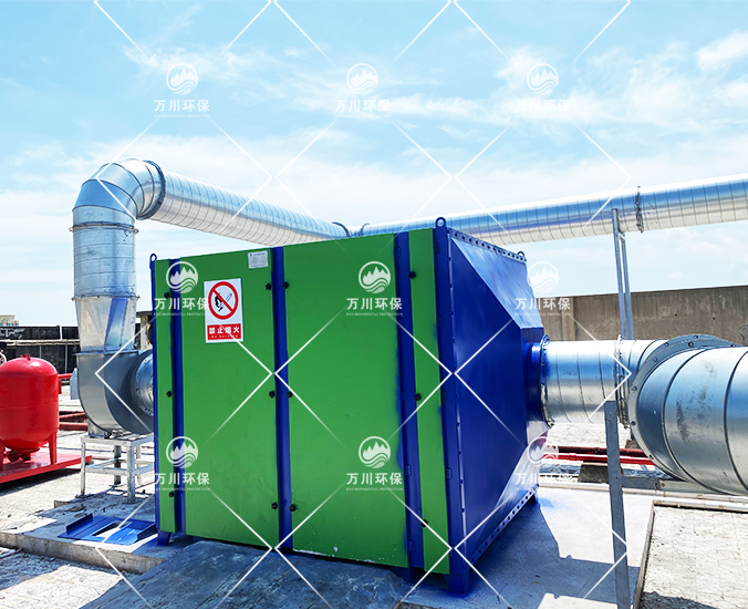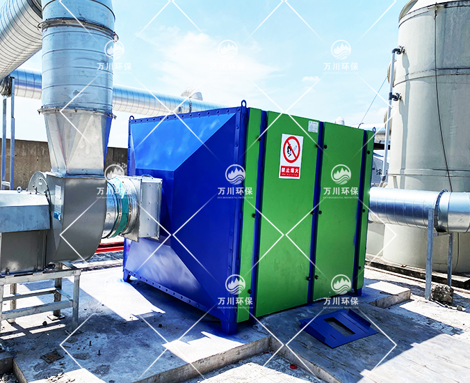 橡膠廢氣從管道進(jìn)入到設(shè)備內(nèi),穿過第一層噴淋層,用水沖洗廢氣,再進(jìn)入到第二、第三層填料層,去除水溶性的粉塵和廢氣,最后進(jìn)入到活性炭吸附層,利用活性炭的吸附力,吸附有機(jī)廢氣,達(dá)到凈化的效果。